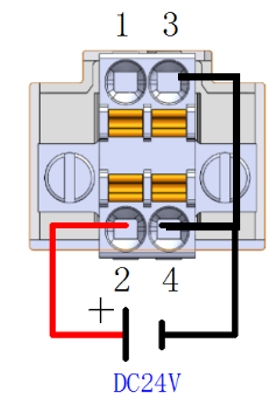 内部供电时,将1号脚与2号脚短接,3号脚与4号短接;此时内部将提供最大2A的24V直流电(如图)